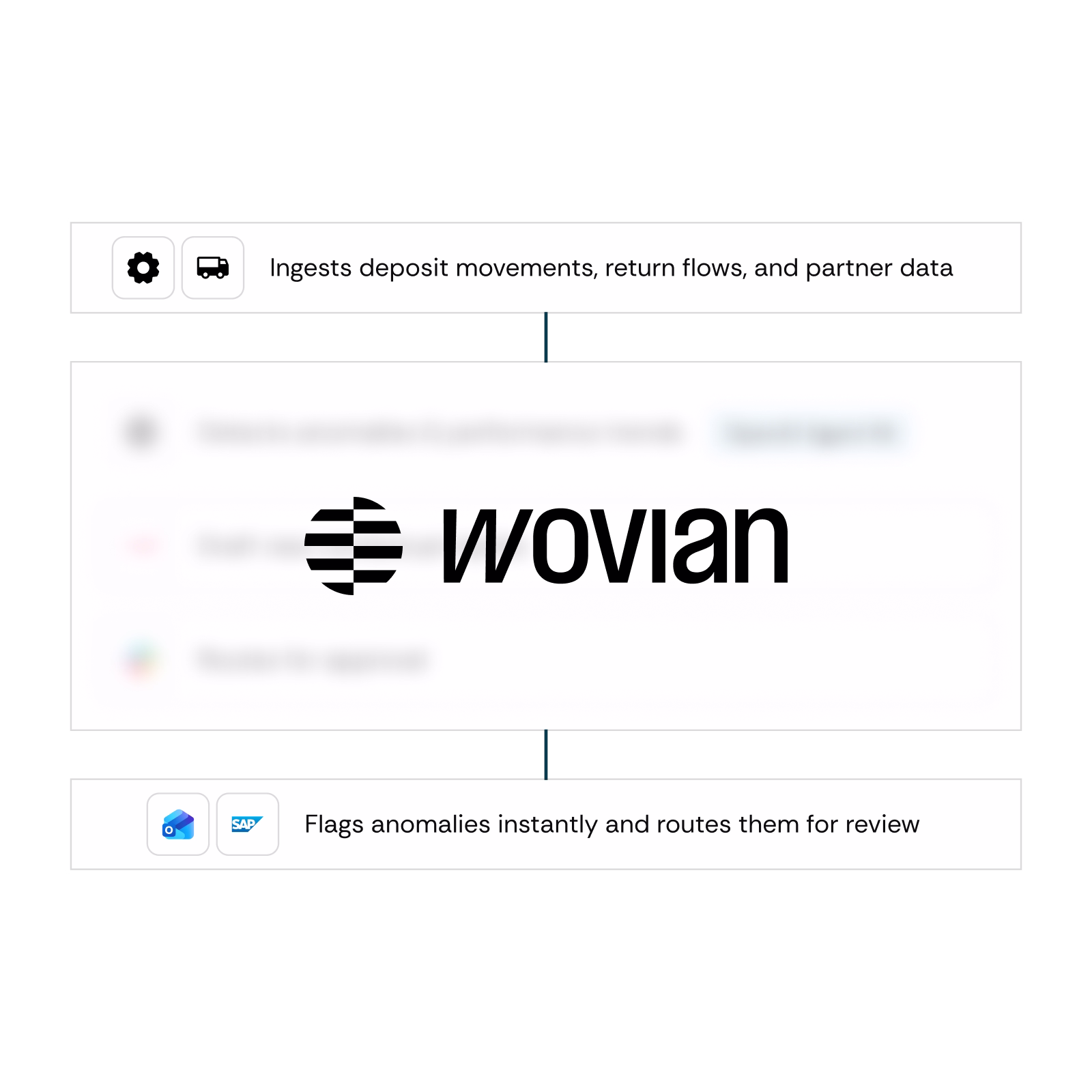 The Wovian Agent scans deposit flows, compares expected versus actual movements, detects irregularities in real time, and flags missing or inconsistent entries for review.